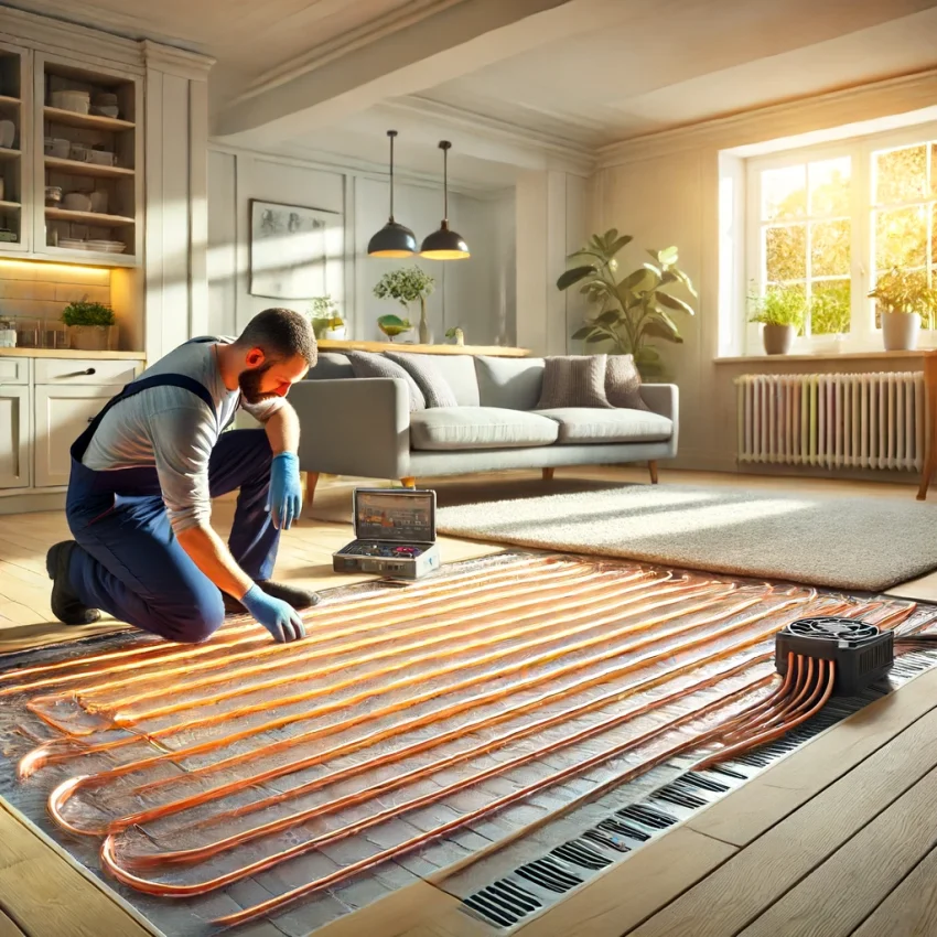 De installatie van vloerverwarming door een loodgietersbedrijf volgt meestal deze stappen: